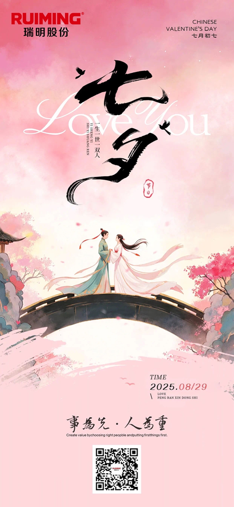 七夕佳节,以爱为名,致敬每一份相伴🌹】亲爱的伙伴与挚友们:七夕星河璀璨,爱意漫过天际。在这个以“爱”为名的传统佳节里,瑞明股份谨向每一位支持我们的客户、并肩奋斗的伙伴,以及默默付出的家人,致以最温暖的问候与感谢!