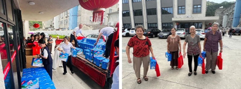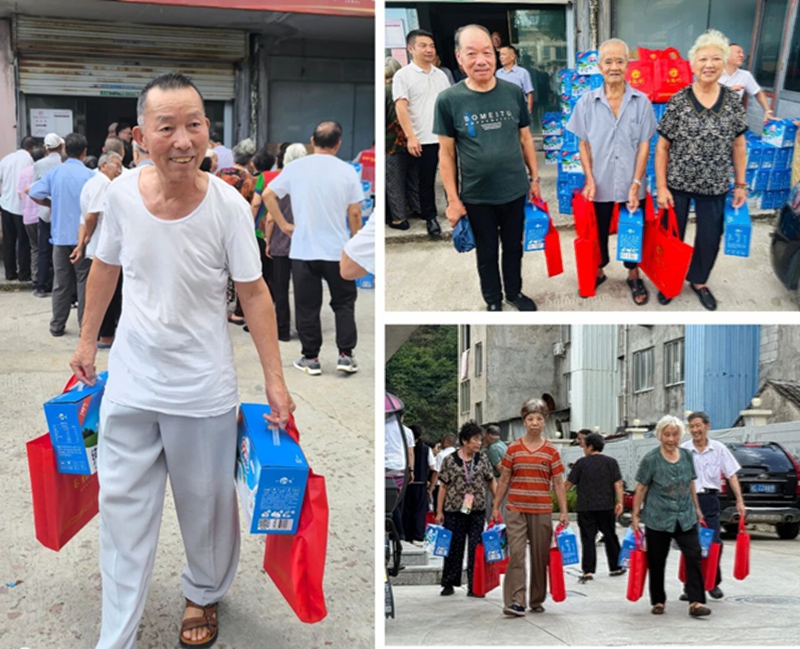 活动当天,瑞明股份代表们带着精心准备的中秋慰问品,分组前往三个村庄。一盒盒象征着团圆与美满的月饼与牛奶,一句句“中秋节快乐,身体健康”的真诚祝福,送到了每一位长辈的手中。